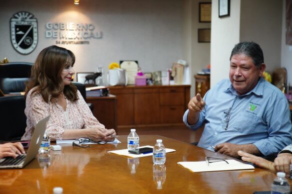 Mexicali, B.C. A martes 28 de junio 2022.- Con el propósito de fortalecer la vigilancia en los cruces fronterizos, la presidenta municipal Norma Bustamante, acompañada del director de Seguridad Pública Municipal (DSPM) Pedro Ariel Mendívil se reunieron con representantes de la Agencia Nacional de Aduanas…
