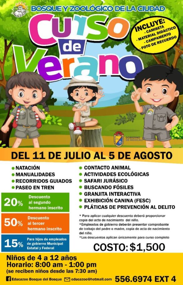 Mexicali, B.C. A miércoles 06 de julio 2022.- El bosque y zoológico de la ciudad anunció que quedan pocos días para inscribirse en su “Curso de Verano 2022”, el cual se llevará a cabo del 11 de julio al 05 de agosto, para niñas y…