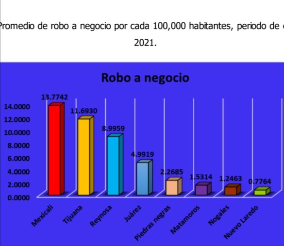 De acuerdo al estudio sobre indicadores de violencia en la frontera Norte de México realizado por el Colegio de la Frontera Norte (Colef) realizado de enero a octubre del 2021, la capital de Baja California quedó en primer lugar en robos a comercio. Por cada…