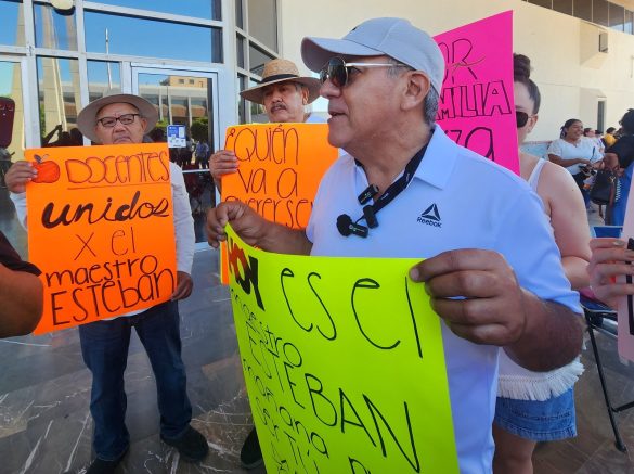 Mexicali.- Maestros del SETE se plantaron esta mañana en Palacio de Gobierno para protestar por la decisión de un juez que declaró culpable al maestro Esteban N por omisión de cuidados en la muerte de un menor en una escuela primaria. Los inconformes señalaron que…