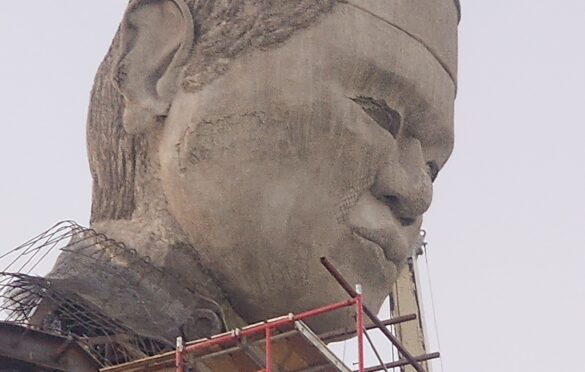 Mexicali.- En los últimos días se ha observado el acelere de los trabajos de la escultura del cocinero chino en Mexicali.