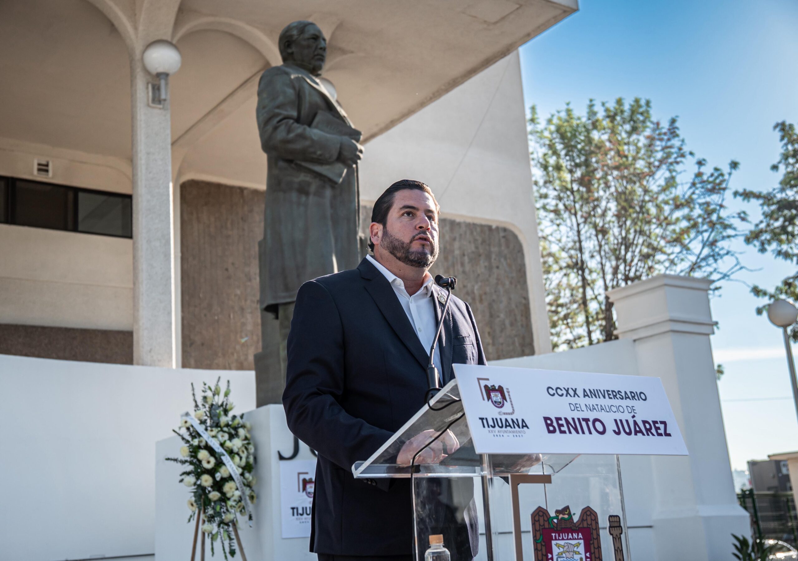 Durante la ceremonia, que se llevó a cabo en la explanada del Monumento al Benemérito de las Americas, en el Centro Universitario de la salud de la Universidad Autónoma de Baja California (UABC), el alcalde de Tijuana destacó la relevancia de honrar la vida y obra de uno de los líderes más importantes en la historia de México.“Con profundo respeto al gran legado que nos heredó como nación, hoy nos reunimos para conmemorar el 220 aniversario del natalicio de Benito Juárez García, un hombre que venció la adversidad y que, con voluntad, perseverancia y determinación, se forjó como un referente de la vida pública nacional”, subrayó el jefe de la comuna.