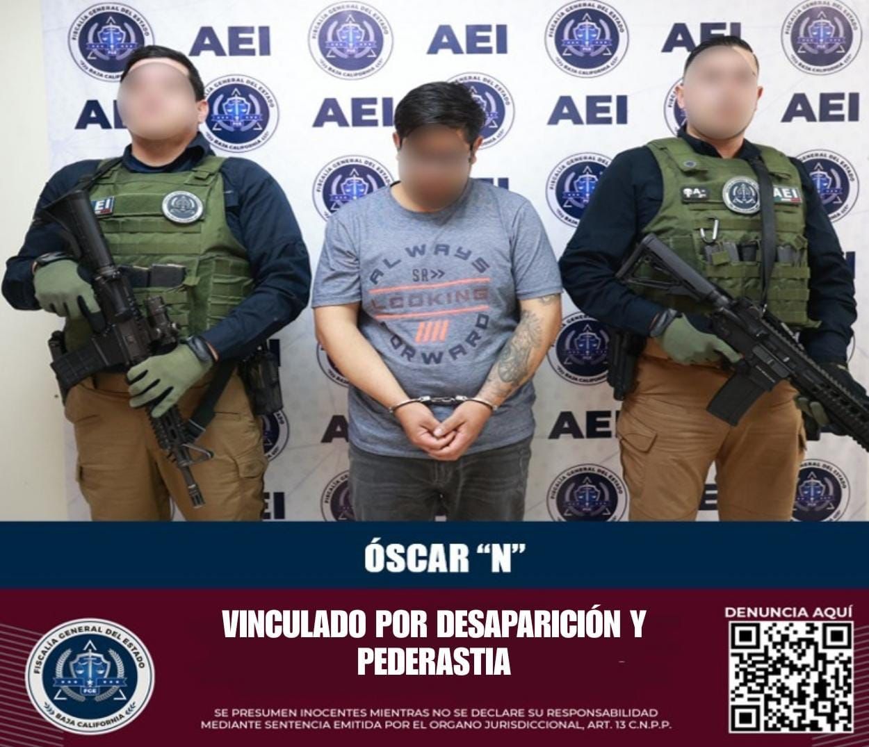 En cumplimiento de las instrucciones de la Fiscal General del Estado de Baja California, Dra. Ma. Elena Andrade Ramírez, de proteger la vida y la integridad de niñas, niños y adolescentes, se logró obtener la vinculación a proceso de Óscar “N”, por los delitos por los delitos de desaparición cometida por particulares agravado y pederastia cometidos en agravio de la adolescente víctima de 15 años de edad.